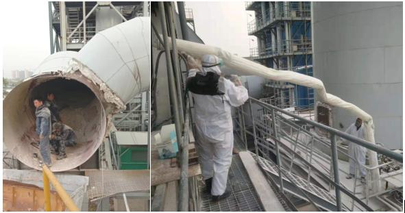 其中,尤其是脫硫管道清灰、布袋除塵器清灰工作由于存在10米處高空作業(yè)、灰渣體量大、密閉空間內(nèi)粉塵密度高等特點,導致施工非常困難。為順利完成該項工作,設備動力部動員部門內(nèi)各黨員、入黨積極分子以及生產(chǎn)骨干組成10人攻堅小組,經(jīng)過精心組織、合理安排,利用班后及周末時間于5天內(nèi)共投入約50個人工,最終清理灰渣總量約120立方,順利予以完成,為環(huán)保系統(tǒng)后期穩(wěn)定運行奠定基礎。